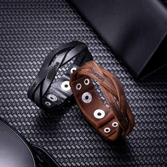 Family Series 1-20 Names Leather Shield Bracelet for Men