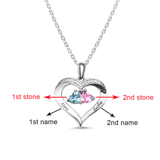 Personalized 2 Heart Birthstone Necklace with Engraving