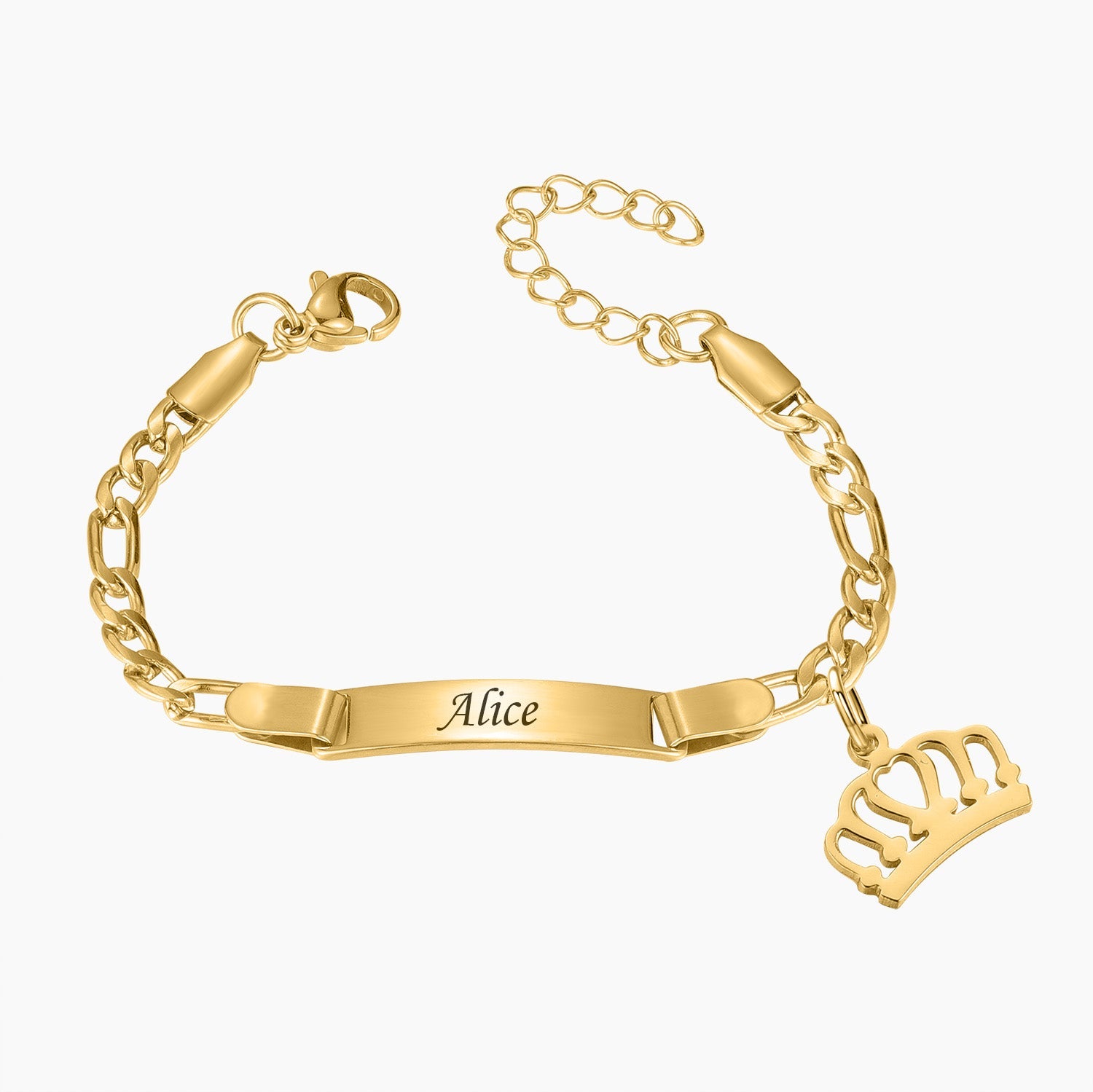 This durable Kids ID Bracelet With Charm is made of stainless steel and features a waterproof design that ensures it will last through any weather. The classic Cuban link chain adds a stylish touch, while also making it secure and comfortable to wear. Keep your child safe and stylish with this functional and fashionable accessory.