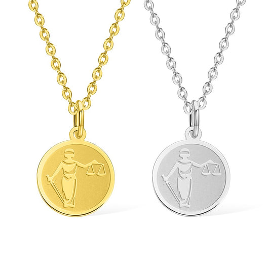 Silver 925 Necklace, Personalized Scale of Justice Necklace, Gold Lawyer Charm, Libra Scales Disc, Birthday/Graduation Gift for Lawyers/Graduates/Friends