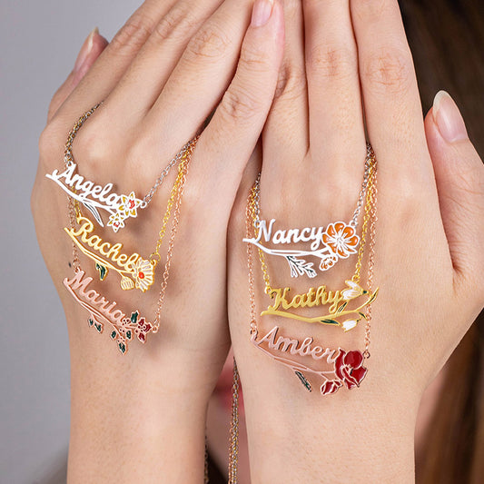 Sterling Silver 925 Necklace, Personalized Name Birth Flower Necklace, Birth Flower Pendant Necklace, Dainty Name Necklace, Birth Flower Jewelry, Gift for Her/Women/Wife/Girlfriend