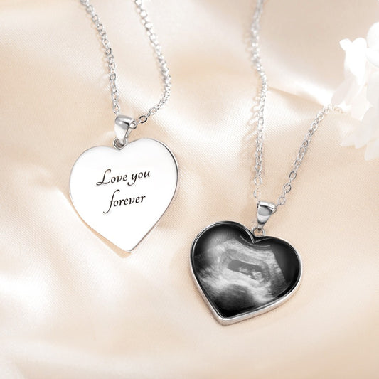 Sterling Silver 925 Necklace, Custom Heart Shaped Baby's Sonogram Ultrasound Necklace with Engraved text, Birthday/New Pregnancy/Newborn Memorial Gift/Women