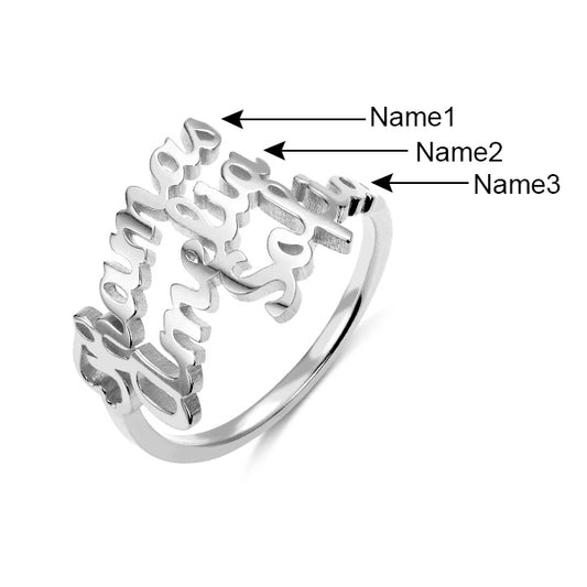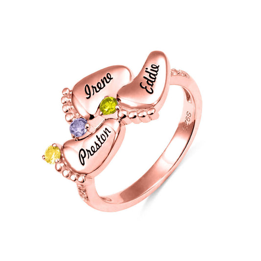 Engraved 3 Baby Feet Name Ring with Birthstone