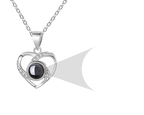 Text around Photo/ Silver 925 Photo Necklace with Love Heart Projection Necklace, 100 Languages I Love You Projection Necklace for Valentine's Day Gift/Memorial Photo Necklace