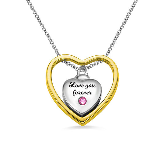 Personalized Double Heart Urn Necklace for Ashes Sterling Silver