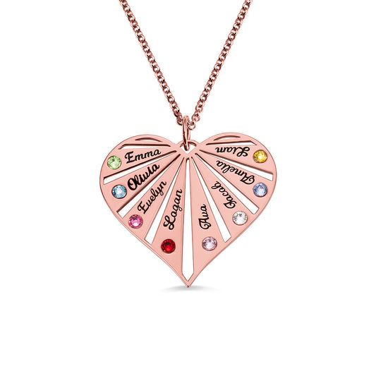Personalized Rose Heart Necklace with Birthstone Sterling Silver