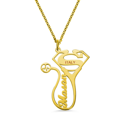 Custom Stethoscope Name Necklace for Medical Workers Sterling Silver