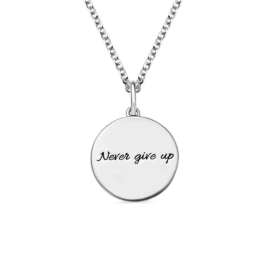 Engraved Birth Flower Disc Necklace Sterling Silver 20 mm