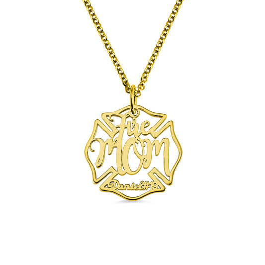 Firefighter Mom Name Badge Necklace Sterling Silver 925